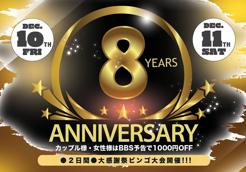 8周年パーティイベントへの皆様のご参加、スタッフ一同心よりお待ち申し上げておりますm(__)m