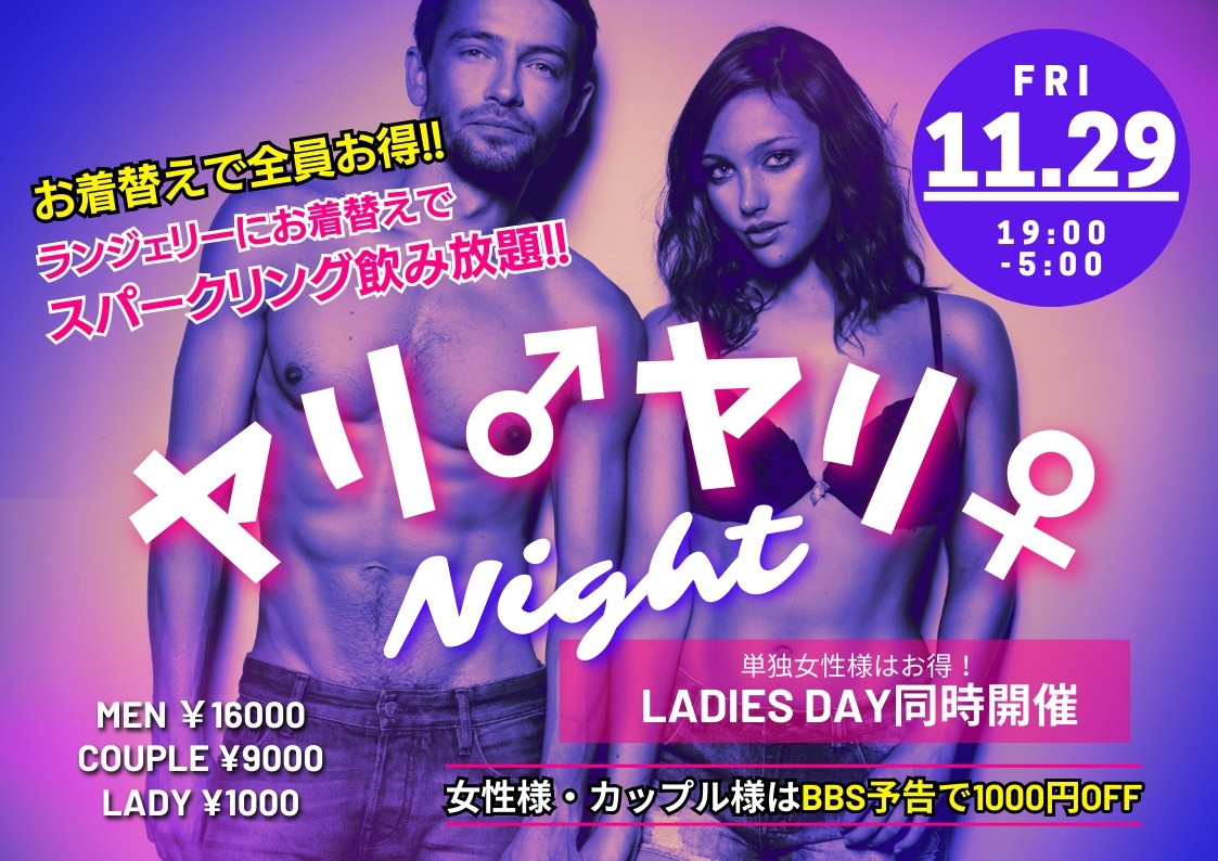 月一イベントヤリ♂ヤリ♀ナイト&レディースDAY