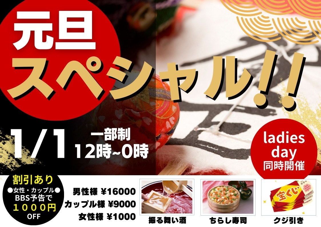 お正月三が日特別企画!元旦スペシャル!〜振る舞い酒〜&レディースDAY